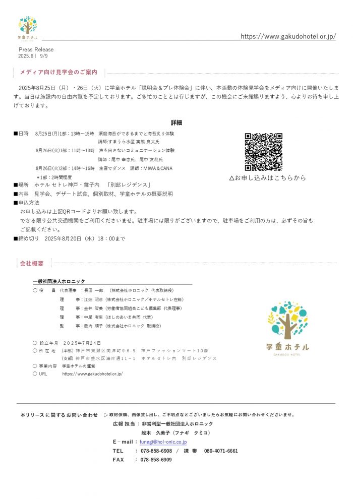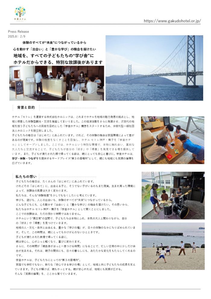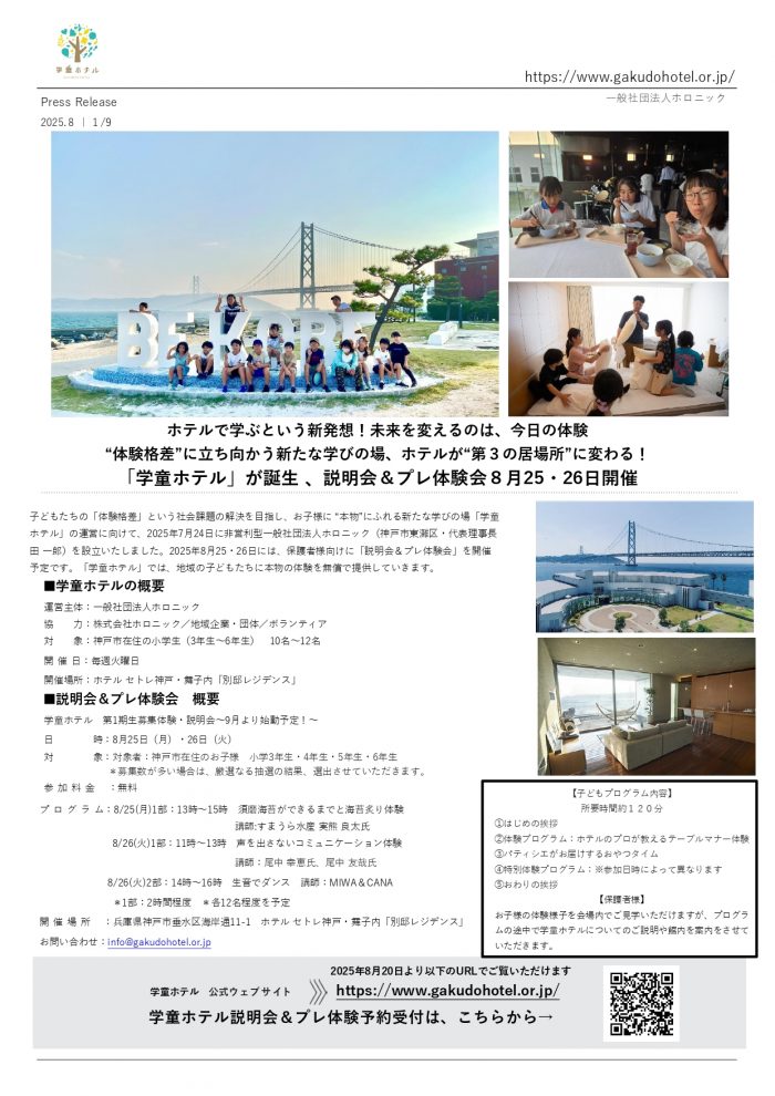 「お子様に“本物”にふれる新たな学びの場「学童ホテル」が誕生 保護者様向けに「説明会&プレ体験会」を8月25日・26日開催