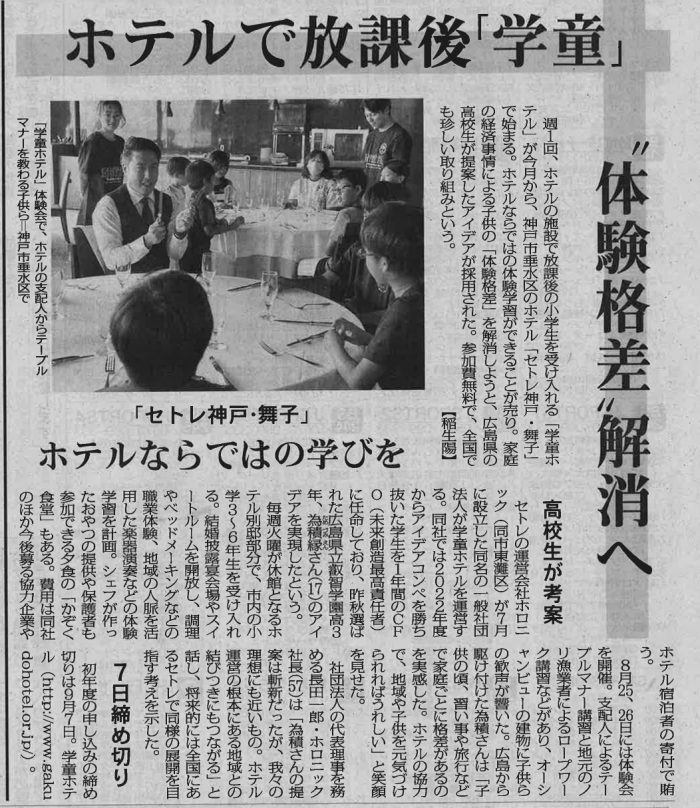 NEWS 2025.09.03 毎日新聞朝刊で「学童ホテル」について紹介いただきました! 2025年9月3日毎日新聞朝刊に、8月25日・26日に開催された「説明・体験会」の様子を掲載いただきました。ぜひ、ご覧ください。 Back 年別 20262025202420232022202120202019 カテゴリ 一覧