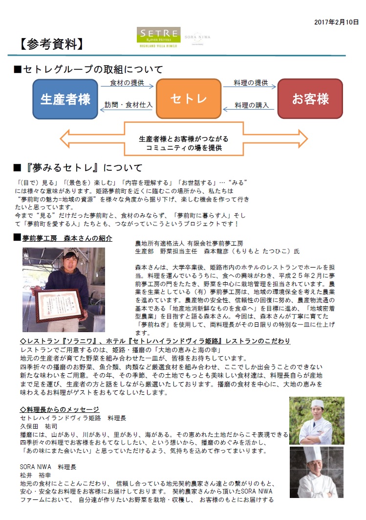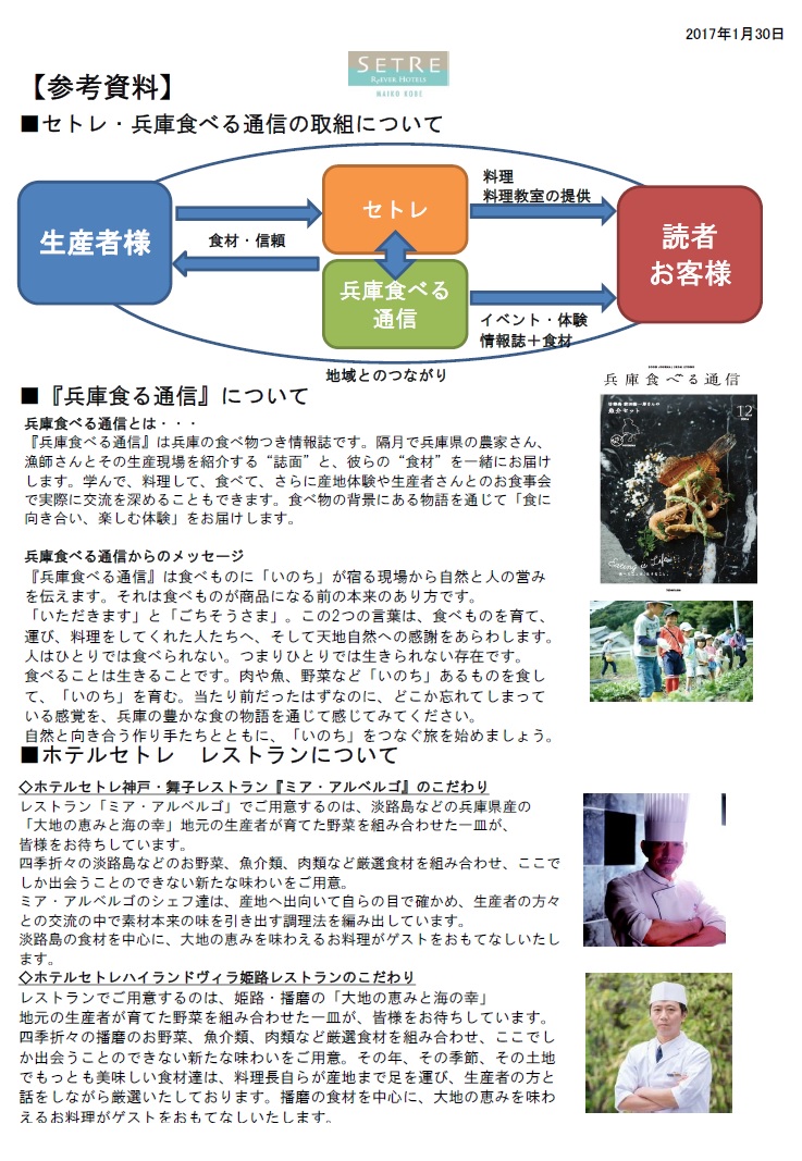 いただけるよう設置いたします。また、今後「兵庫食べる通信」に併せて4月よりセトレに食材をご