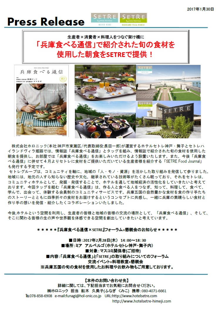 ホテルセトレ神戸・舞子とセトレハイランドヴィラ姫路では、情報誌「兵庫食べる通信」とタッグを組み、
