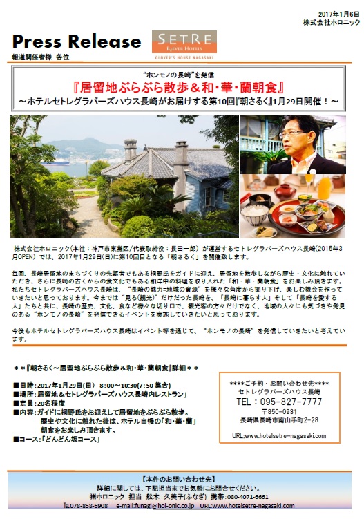セトレグラバーズハウス長崎(2015年3月OPEN)では、2017年1月29日(日)に第10回目となる「朝さるく」を開催致します。