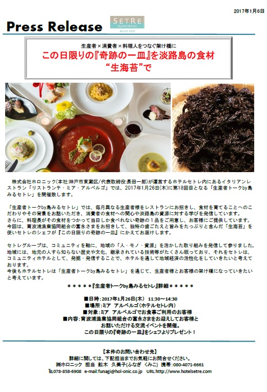 ホテルセトレ内にあるイタリアンレストラン「リストランテ・ミア・アルベルゴ」では、2017年1月26日(木)に第18回目となる