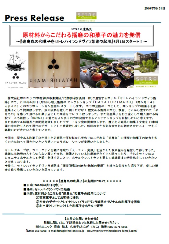 2016年6月1日(水)から地元姫路の セレクトショップ「HAYATORIMARU」とのコラボレーション企画が スタートします。
