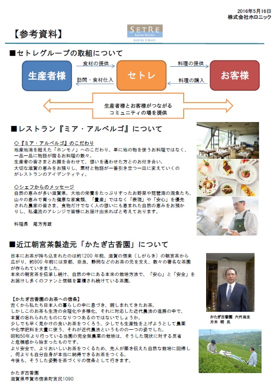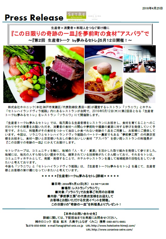 「生産者トークby夢みるセトレ」をレストラン「ソラニワ」にて開催致します。