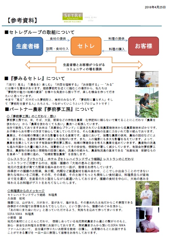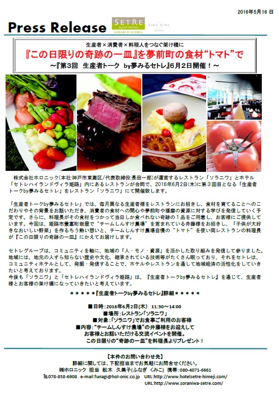 ソラニワ&セトレハイランドヴィラ姫路にて「第3回生産者トーク by夢みるセトレ」を6月2日に開催!