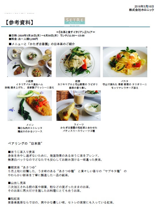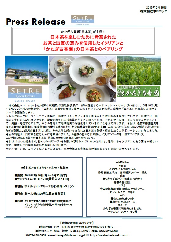 セトレマリーナびわ湖「お茶と食すイタリアン」フェア開催!