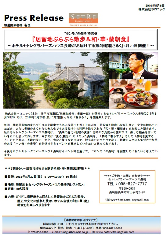 さらには、長崎の古くからの食文化でもある和洋中の料理を取り入れた「和・華・蘭朝食」をお楽しみ頂ける『朝さるく』のイベントを実施します。