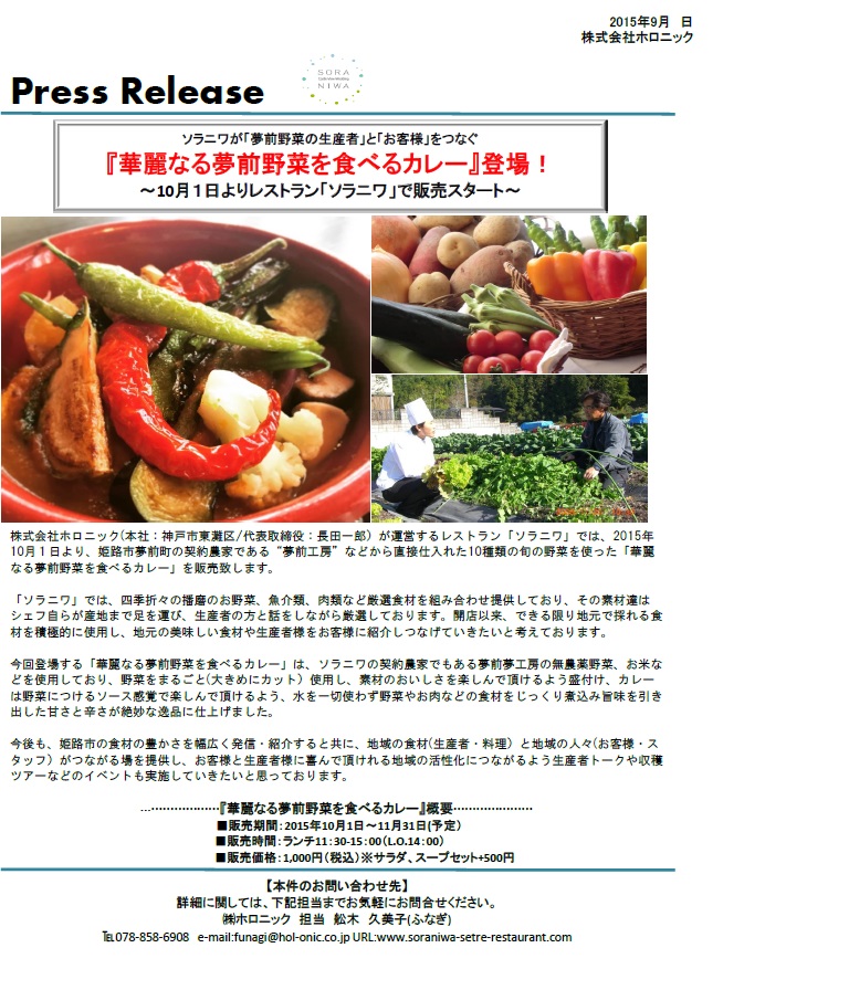 「華麗なる夢前野菜を食べるカレー」がソラニワにて販売開始!
