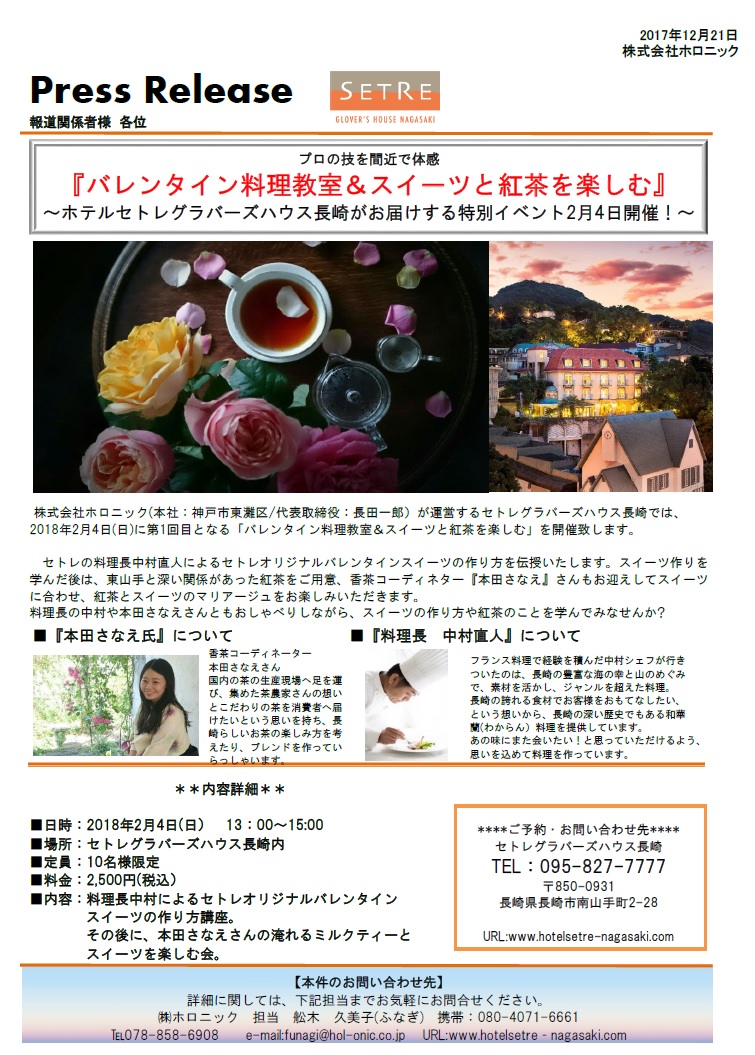 株式会社ホロニック(本社:神戸市東灘区/代表取締役:長田一郎)が運営するセトレグラバーズハウス長崎では、2018年2月4日(日)に第1回目となる