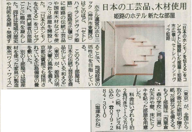 2017年3月30日(木)に神戸新聞朝刊で、セトレハイランドヴィラ姫路のコンセプトルームについてご紹介いただきました。