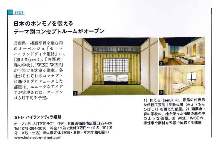 2017年3月6日(月)発売、Discover Japan4月号にセトレハイランドヴィラ姫路で3月下旬オープン予定のコンセプトルームを紹介いただきました。