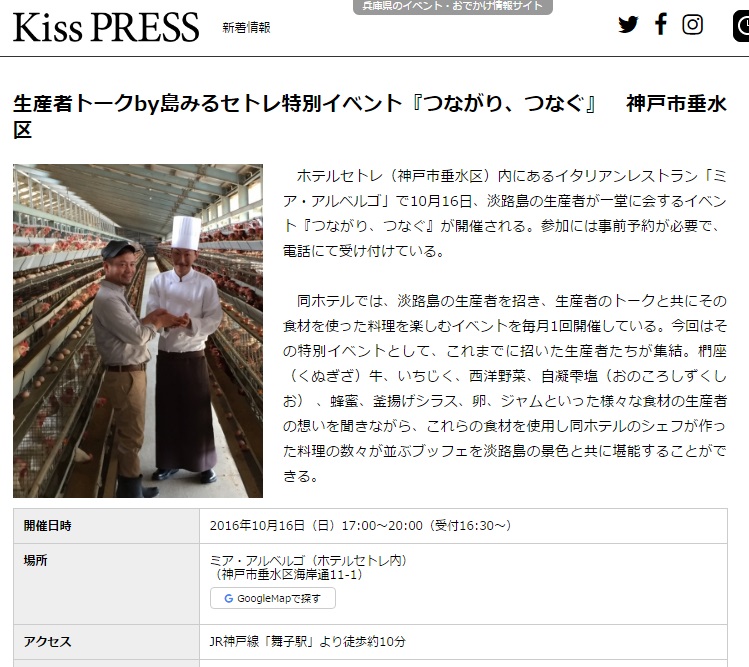 Kiss PRESSにセトレ舞子で10月16日開催の「つながり、つなぐ」が紹介されました!