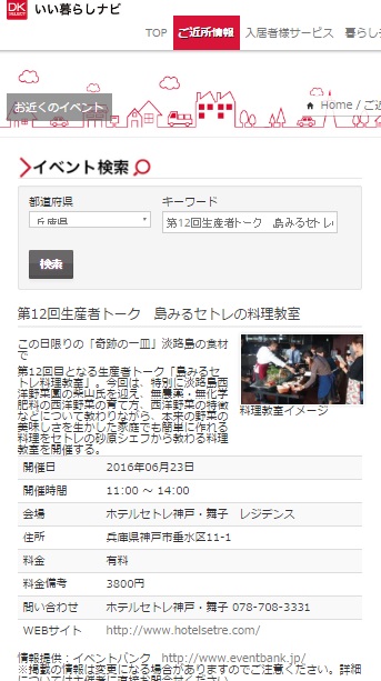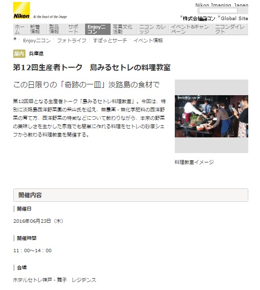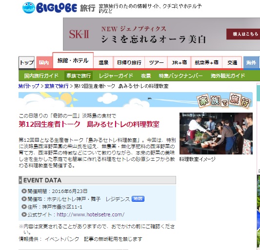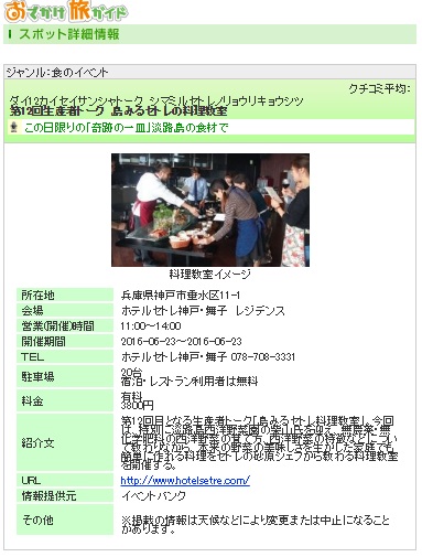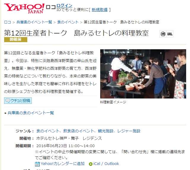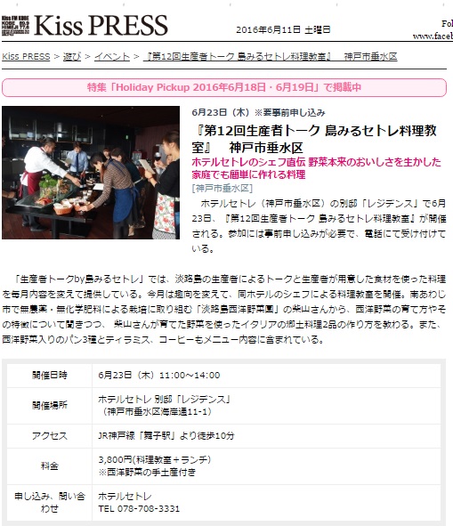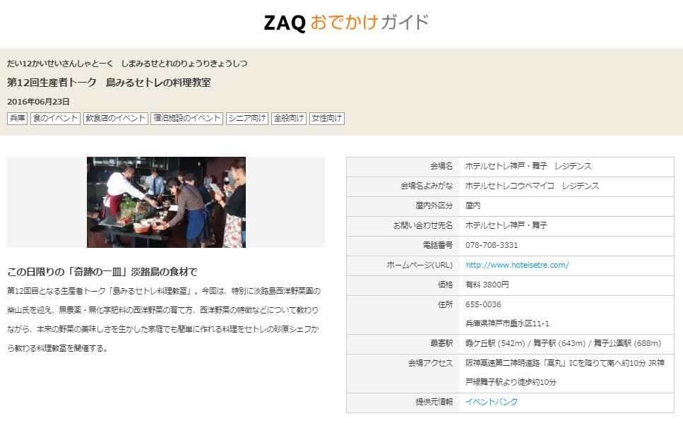 セトレ神戸・舞子の第12回生産者トーク 島みるセトレ料理教室が情報サイトに掲載されました