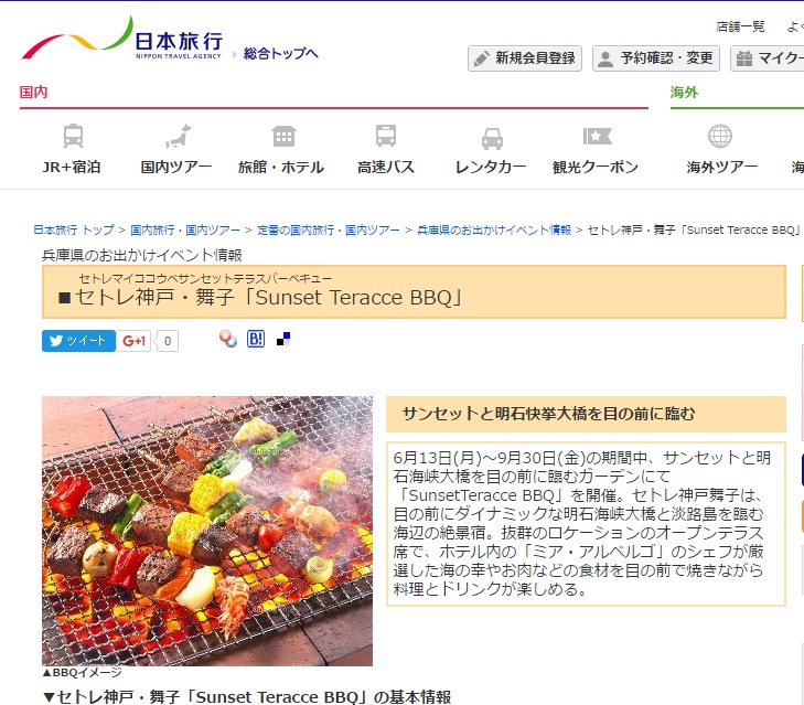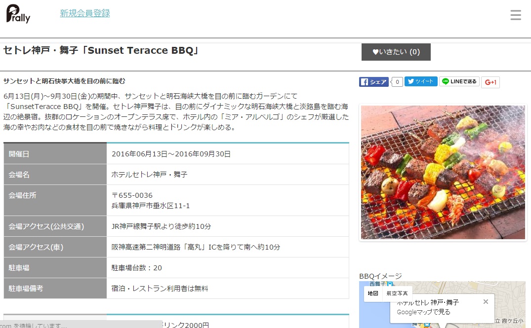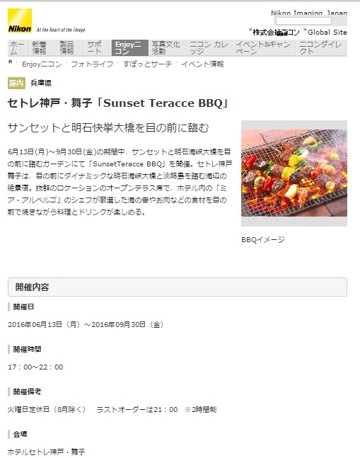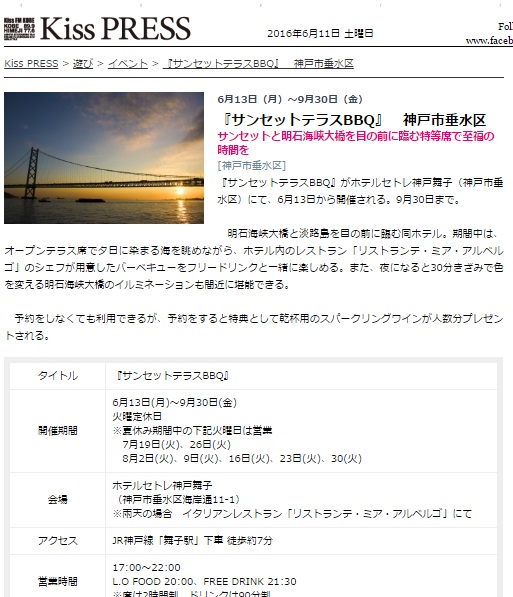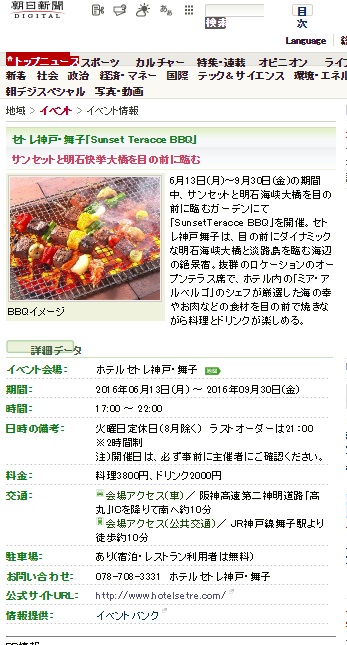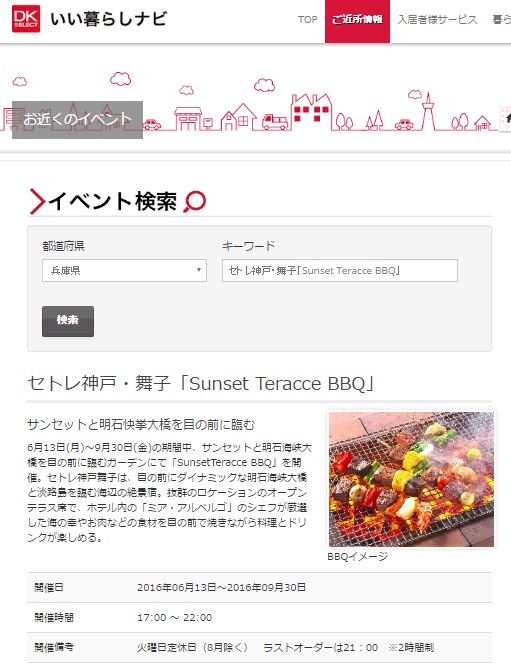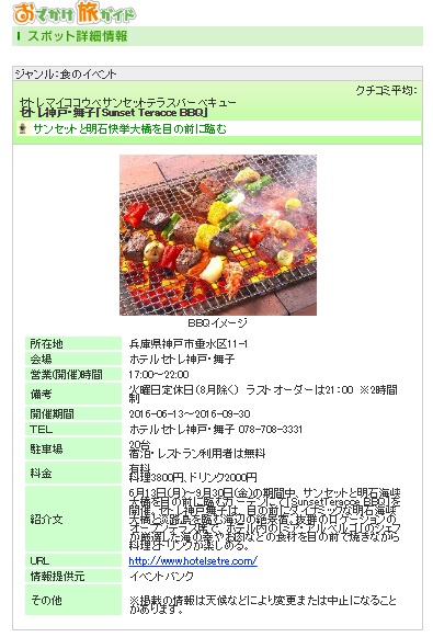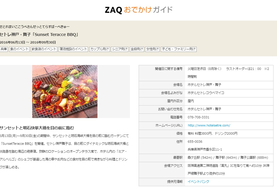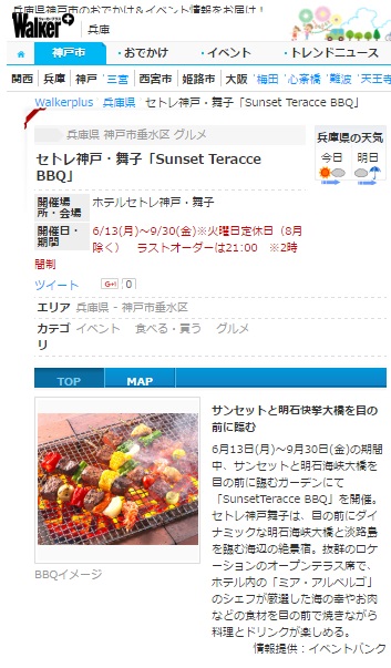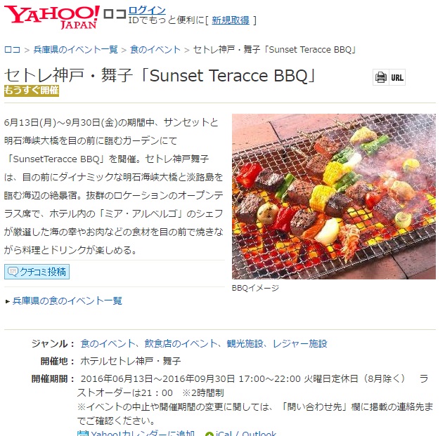 セトレ舞子のSunset Teracce BBQが情報サイトに掲載されました