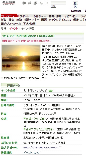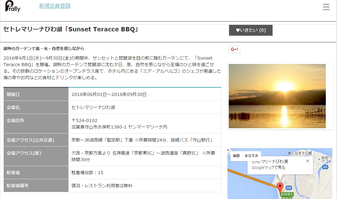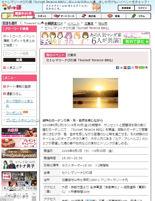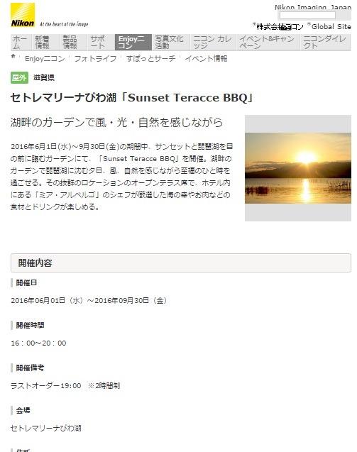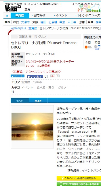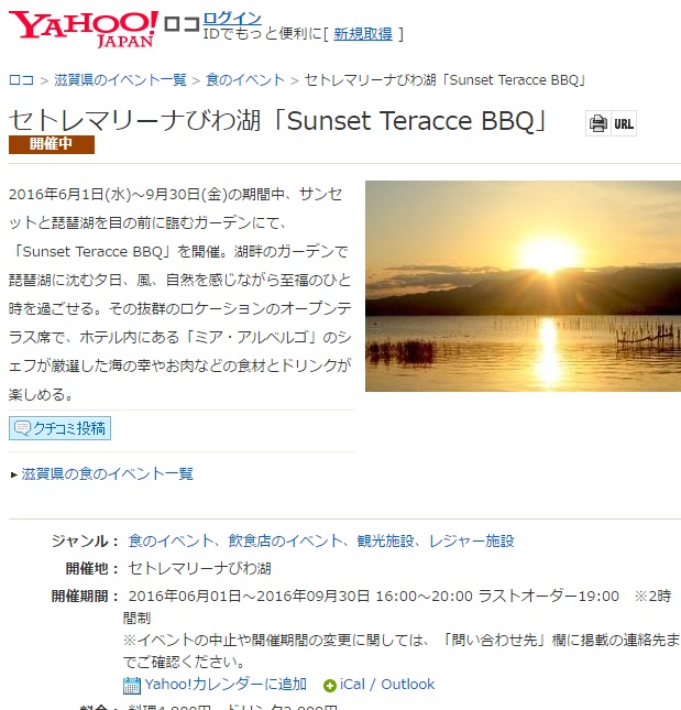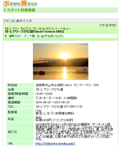 セトレマリーナびわ湖のSunset Garden BBQが情報サイトに掲載されました